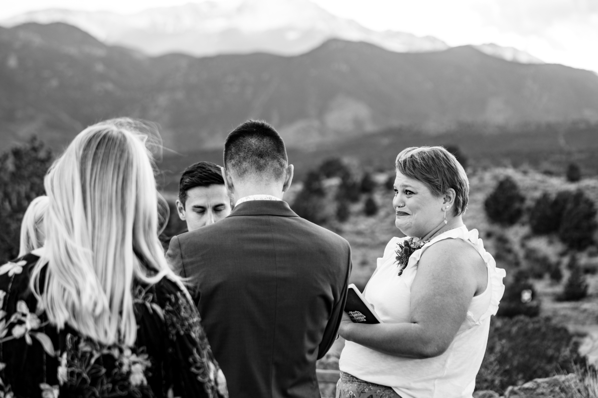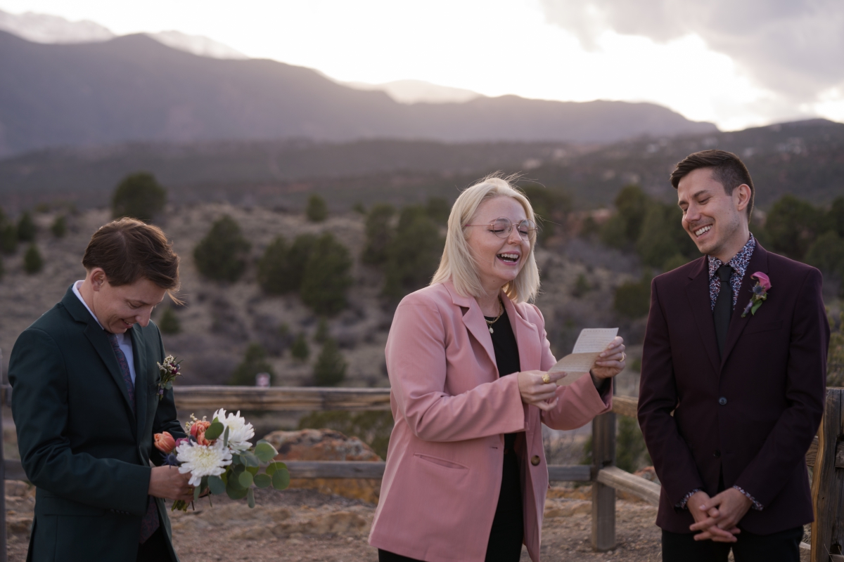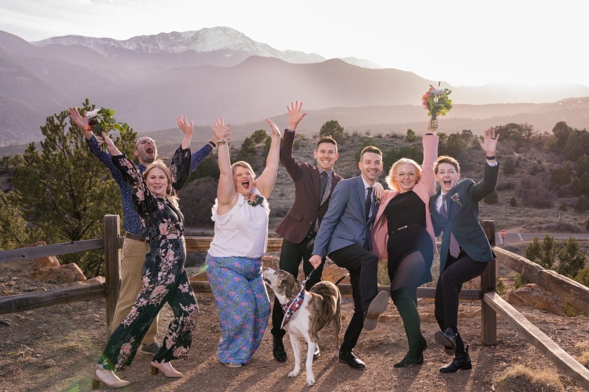 During their vows, I was especially touched by Phillip’s story. He recounted about starting to lose hope for love and thinking of the song lyrics, “God only knows where I’d be without you.” This was the song that his dear friend played now, years later at Garden of the Gods Park, knowing he’s here now with the one person that was meant for him. Alongside their adorable dog they sang, they drank and they basked in the warmth and love that surrounded them.