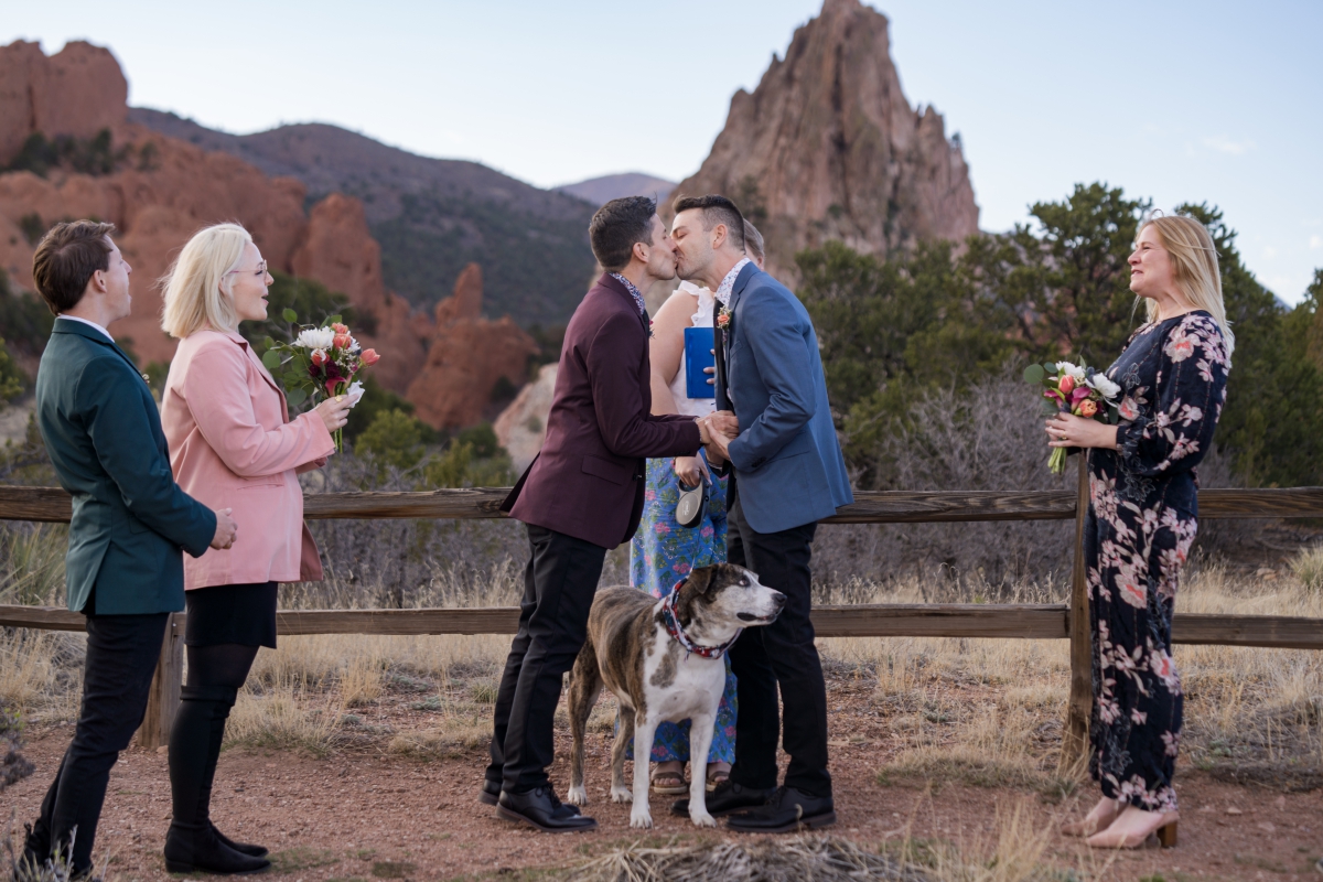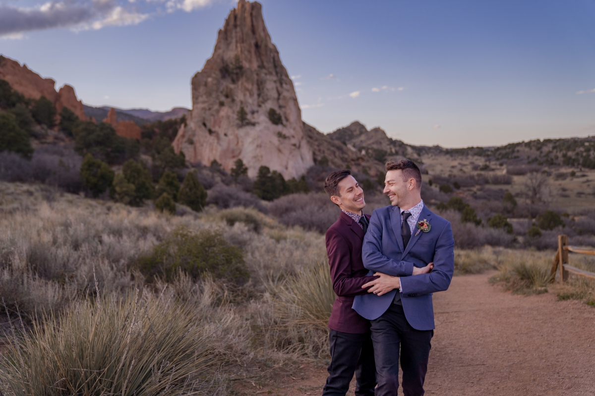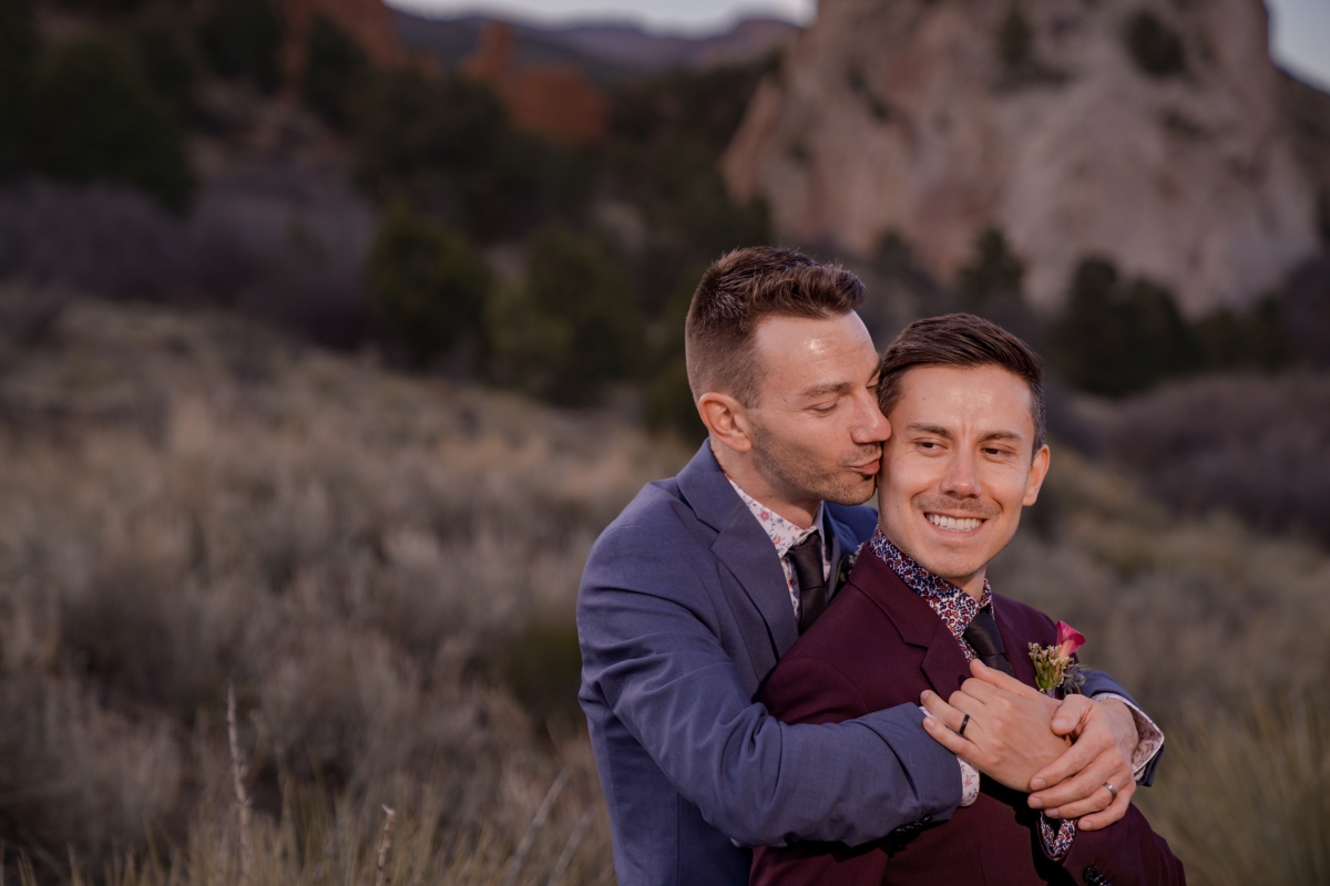 On a fairly warm April day in Colorado Springs, Jeremy and Phillip wanted an intimate, emotional day celebrating their love. As a same sex gay couple, its an unfortunate truth that sometimes family doesn’t always show up. Many couples go without family to support, acknowledge or fully accept your love story. Nevertheless, your chosen family, will carry you up and then shout with you from the mountain tops. Garden of the Gods Park is picturesque and perfectly framed to amplified their story and love.